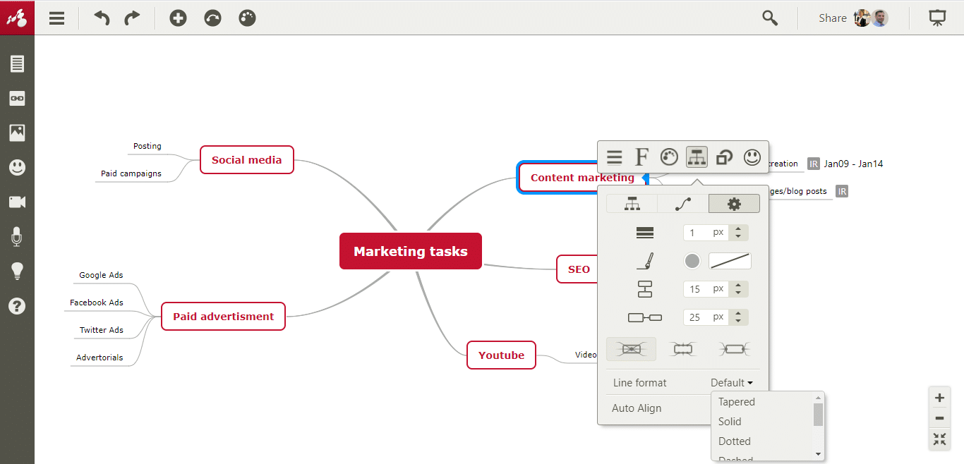 We have been active on Facebook, Instagram, Pinterest, Twitter, and Linkedin. We have connected with our users by sharing mind maps, templates, videos, tips, and tricks, and blog posts to help them learn more about mind mapping techniques and to stimulate their creativity.