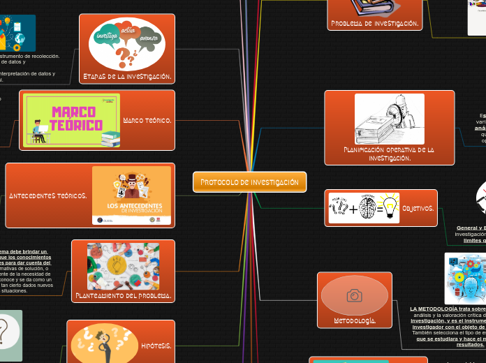 Un protocolo de investigación describe los objetivos, diseño, metodología y consideraciones tomadas en cuenta para la implementación y organización de una investigación o experimento científico. Incluye el diseño de los procedimientos a ser utilizados para la observación, análisis e interpretación de los resultados.