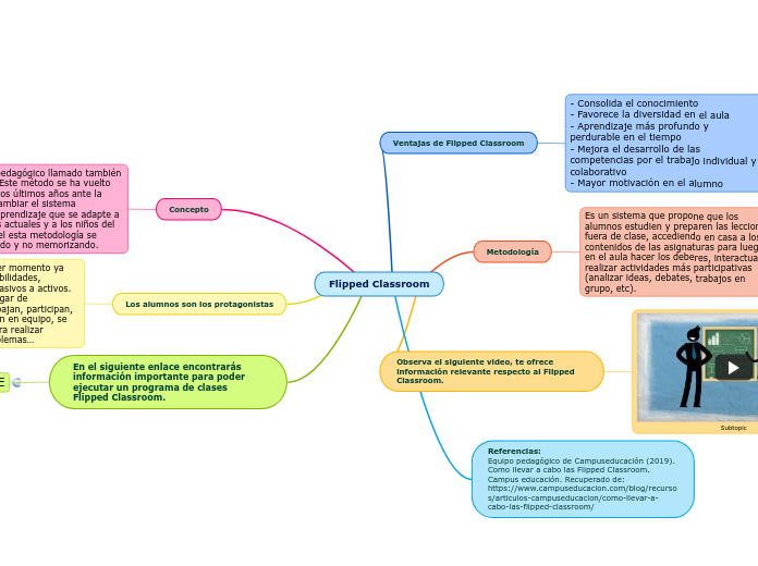 Es un sistema que propone que los alumnos estudien y preparen las lecciones fuera de clase, accediendo en casa a los contenidos de las asignaturas para luego en el aula hacer los deberes, interactuar y realizar actividades más participativas (analizar ideas, debates, trabajos en grupo, etc).