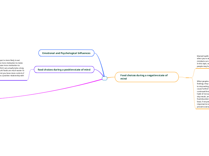 Mental health is a huge part of your food choices, especially when you're affected by it on a day to day basis. These mindsets can effect your food choices positively or negatively. In this topic, we will be talking about different food choices that people may have if they're in a negative state of mind.