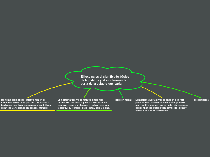 El morfema flexivo construye diferentes formas de una misma palabra, con ellos se marca el genero y el numero en los nombres y adjetivos. ejemplo: gato- gata , pala y palas.