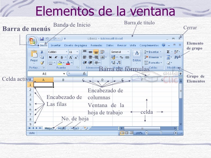 Está ubicada debajo de la barra de título y sirve para agrupar los comandos de Excel en categorías denominados también menús. El contenido de los menúes se puede visualizar haciendo clic en el nombre del menú con el botón izquierdo del ratón.