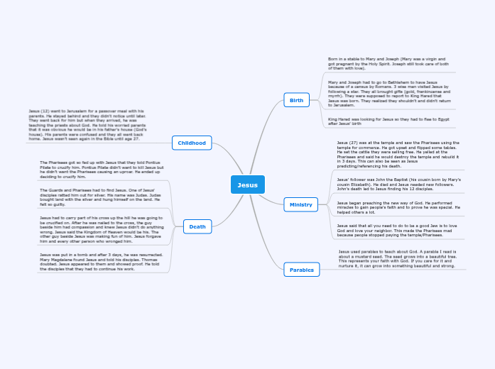 Jesus used parables to teach about God. A parable I read is about a mustard seed. The seed grows into a beautiful tree. This represents your faith with God. If you care for it and nurture it, it can grow into something beautiful and strong.