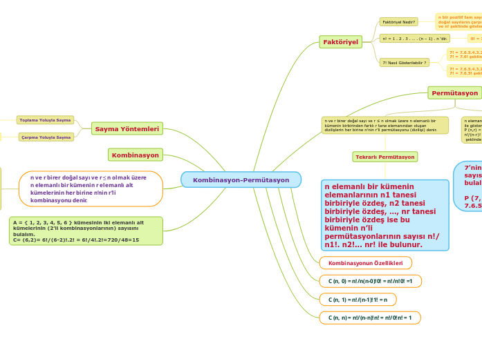 n elemanlı bir kümenin elemanlarının n1 tanesi birbiriyle özdeş, n2 tanesi birbiriyle özdeş, …, nr tanesi birbiriyle özdeş ise bu kümenin n’li permütasyonlarının sayısı n!/ n1!. n2!... nr! ile bulunur.