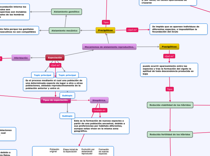 Cuando en una población amplia, esta es fragmentada debido a la aparición de una barrera física, que ocasiona que en la población se desarrollen subgrupos aislados, y que a continuación sufrirían especiación.