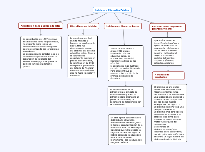 El laicismo es uno de los temas mas sensibles de la historia contemporánea del Ecuador y se lo considera una expresión de identidad y modernización conquistada por las clases medias emergentes del siglo XIX. El laicismo siempre tuvo una perspectiva nacional. El laicismo creó otro tipo de sacralidad alternativa a la católica, que sirvió para sostener el nuevo sistema moral y jerárquico del Liberalismo. Se concretó en el discurso pedagógico inspirado en el positivismo, por el cual la educación laica encontró un lugar natural en el desarrollo de la historia.