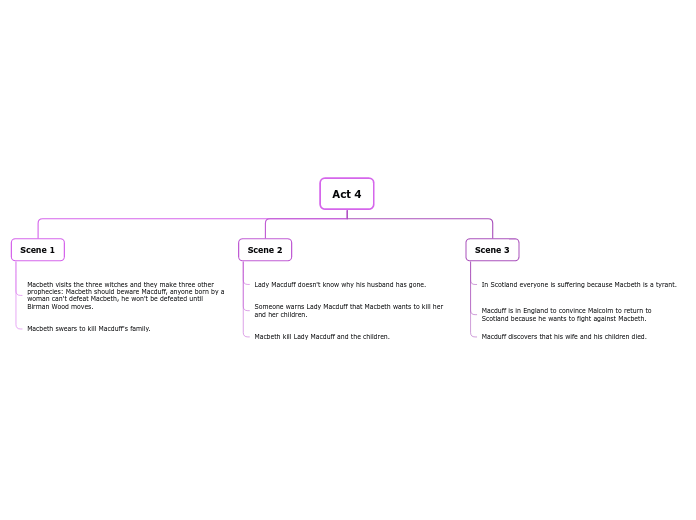 Macbeth visits the three witches and they make three other prophecies: Macbeth should beware Macduff, anyone born by a woman can't defeat Macbeth, he won't be defeated until Birman Wood moves.