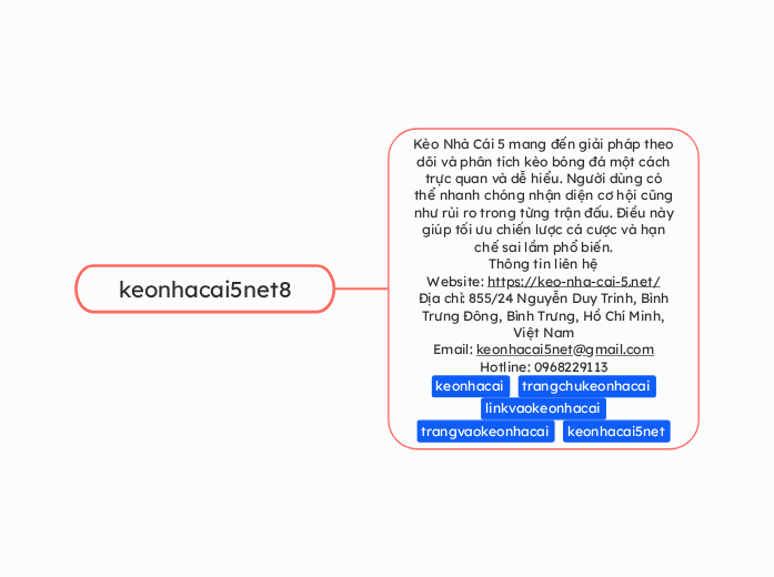 Kèo Nhà Cái 5 mang đến giải pháp theo dõi và phân tích kèo bóng đá một cách trực quan và dễ hiểu. Người dùng có thể nhanh chóng nhận diện cơ hội cũng như rủi ro trong từng trận đấu. Điều này giúp tối ưu chiến lược cá cược và hạn chế sai lầm phổ biến. Thông tin liên hệ Website: https://keo-nha-cai-5.net/ Địa chỉ: 855/24 Nguyễn Duy Trinh, Bình Trưng Đông, Bình Trưng, Hồ Chí Minh, Việt Nam Email: keonhacai5net@gmail.com Hotline: 0968229113 keonhacaitrangchukeonhacailinkvaokeonhacaitrangvaokeonhacaikeonhacai5net