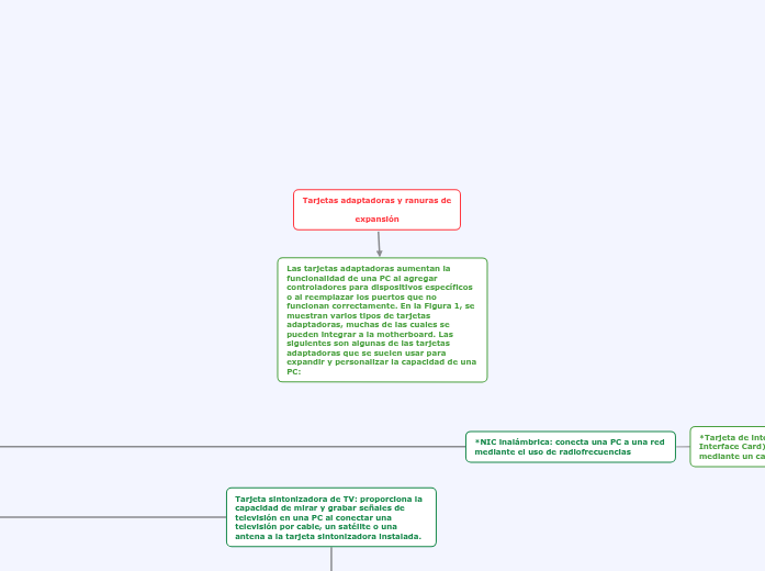 Las PC tienen ranuras de expansión en la motherboard para instalar las tarjetas adaptadoras. El tipo de conector de la tarjeta adaptadora debe coincidir con la ranura de expansión.
