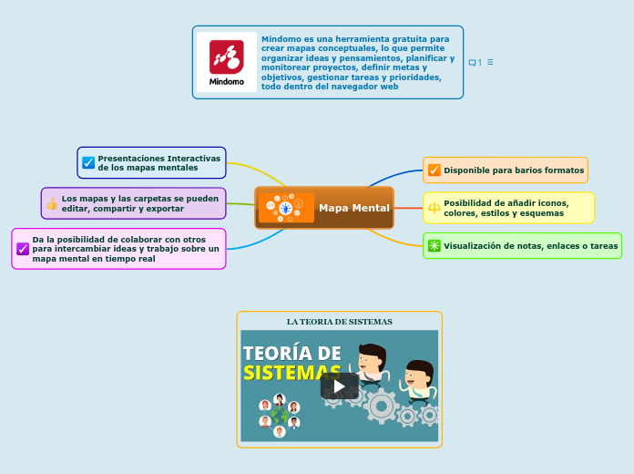 Mindomo es una herramienta gratuita para crear mapas conceptuales, lo que permite organizar ideas y pensamientos, planificar y monitorear proyectos, definir metas y objetivos, gestionar tareas y prioridades, todo dentro del navegador web