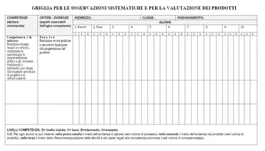 valutazione delle evidenze per ciascuna delle 3 fasi (attraverso GRIGLIA PER LE OSSERVAZIONI SISTEMATICHE E PER LA VALUTAZIONE DEI PRODOTTI, chek list, performance list