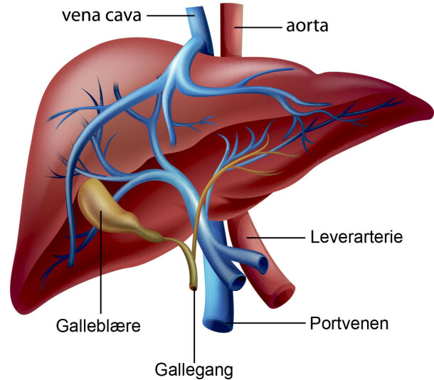 Leveren er kroppens største kjertel og veier 1,5-2 kg. Den ligger like under mellomgulvet. oppgaven til leveren er å motta blod fra portåren og næring stoffer fra tarmen
