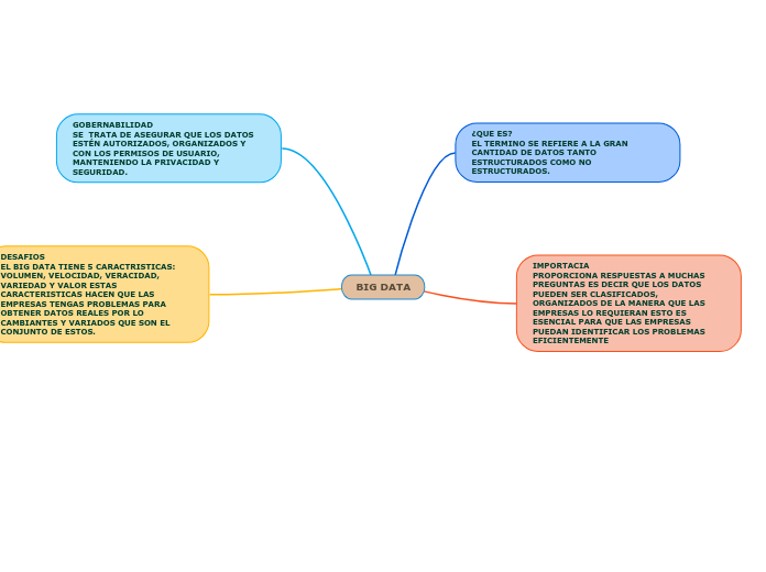 DESAFIOS EL BIG DATA TIENE 5 CARACTRISTICAS: VOLUMEN, VELOCIDAD, VERACIDAD, VARIEDAD Y VALOR ESTAS CARACTERISTICAS HACEN QUE LAS EMPRESAS TENGAS PROBLEMAS PARA OBTENER DATOS REALES POR LO CAMBIANTES Y VARIADOS QUE SON EL CONJUNTO DE ESTOS.