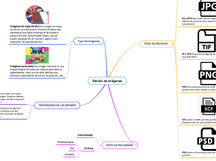 XCF(Usado en GIMP, permite guardar capas, canales, transparencias, etc, para posteriormente editarlas)