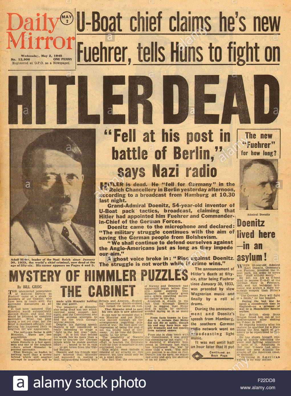 On April 28th 1945 When news of Mussolini's fate reached Hitler, he decided to commit suicide rather than fall into the