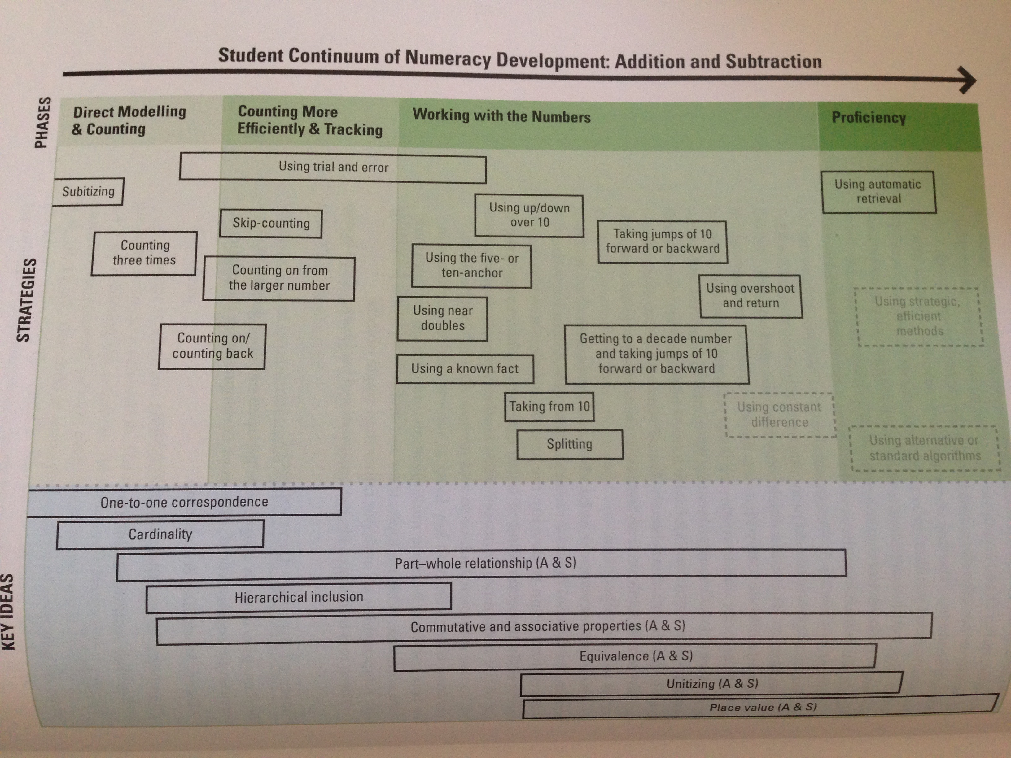 This continuum will help teachers to see early numeracy phases, strategies and key concepts. It is useful to know where learners are at and how to guide them to the next strategies on the continuum.