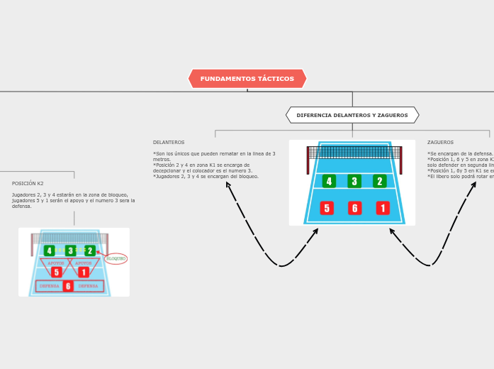 *Posición 1, 6 y 5 en zona K2 no pueden bloquear, solo defender en segunda linea.